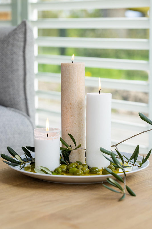Upcycled olive wax pillar candles 6 cm x 18 cm - Off White Upcycled olive wax pillar candles 6 cm x 18 cm - Off WhiteNormaler Preis 105 krVerkaufspreis 105 kr Normaler PreisGrundpreis proNormaler Preis 105 krVerkaufspreis 105 kr Normaler PreisGrundpreis pro